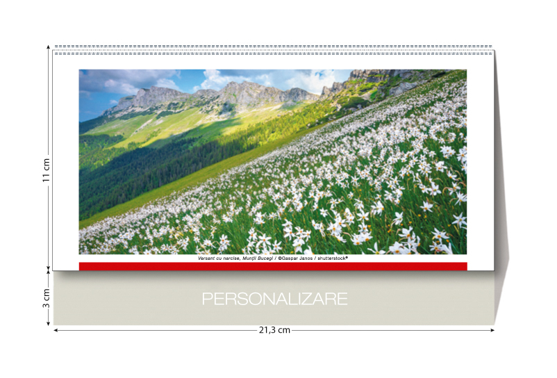 Finishing: spira metalica alba, personalizare: 21,3 x 3 cm (format maxim imprimat)