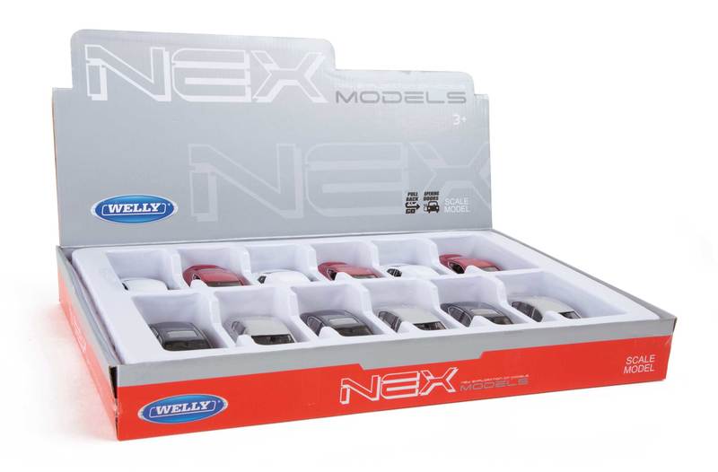 Set of 12. These four model cars are sporty and streamlined. Every car can show what it is made of. With the pull-back action they are really fast. Super colours and hinged doors as well as the rubber tyres make these model cars real eye-catchers.