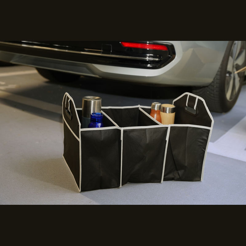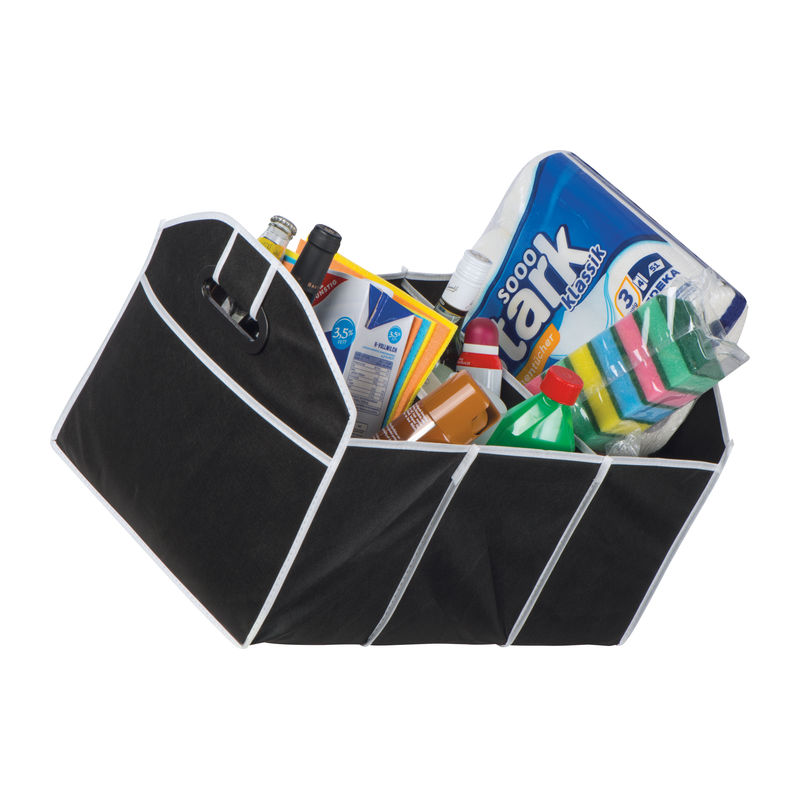 Non-woven, foldable car bag designed for the boot. When folded, it saves valuable space; when unfolded, it provides an ideal area for all your shopping items.