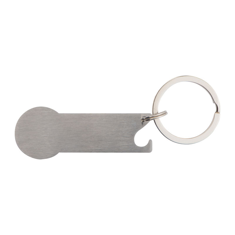 Metal keyring with integrated shopping cart chip. Your logo will be engraved.