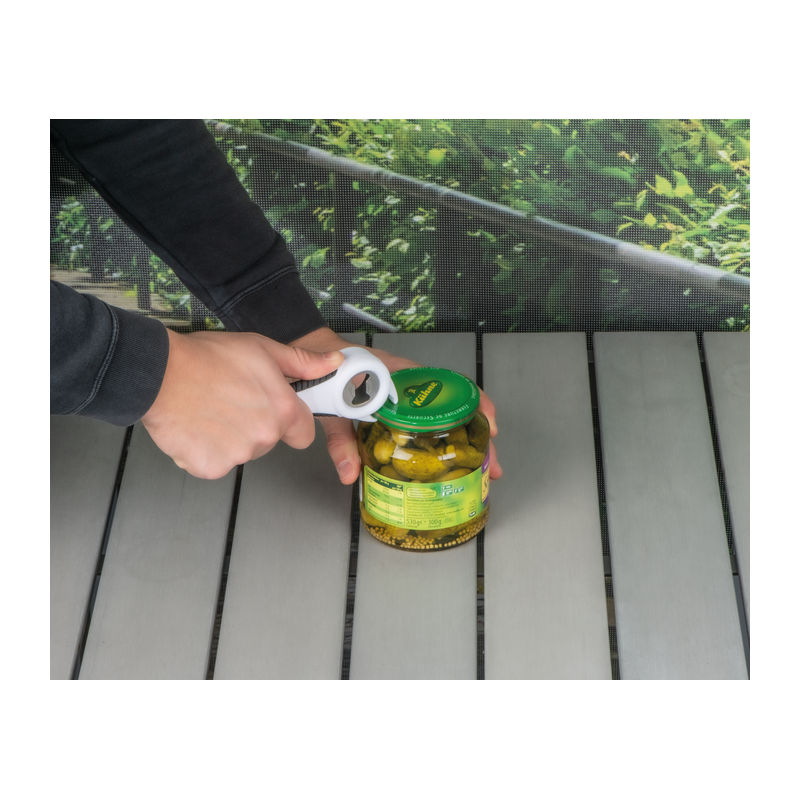 The versatile Multi-opener Odessa facilitates the effortless opening of cans, bottles, and jars, significantly easing everyday tasks.