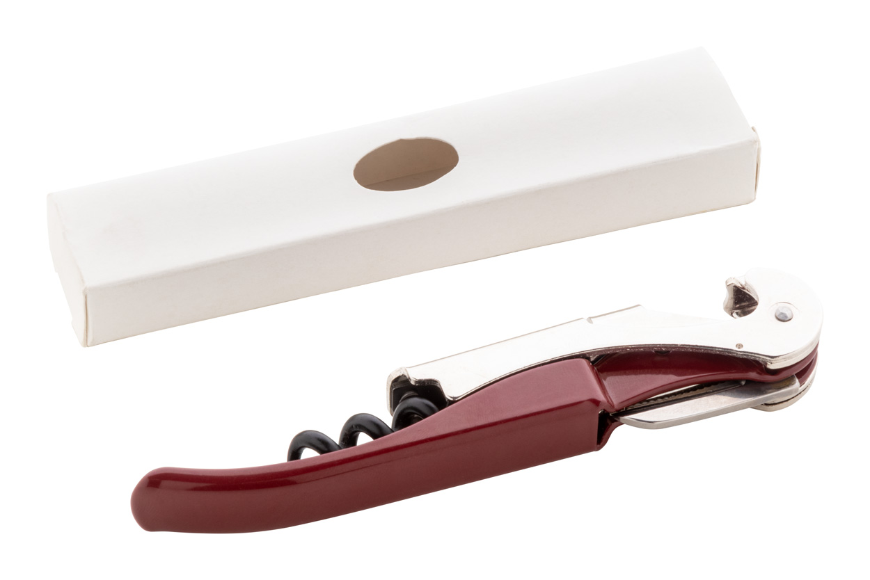 Stainless steel bottle opener and corkscrew.