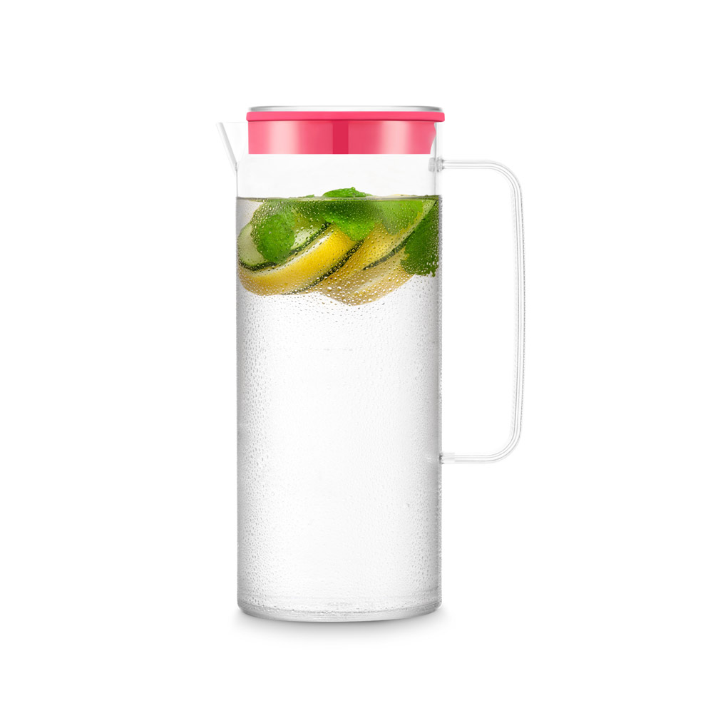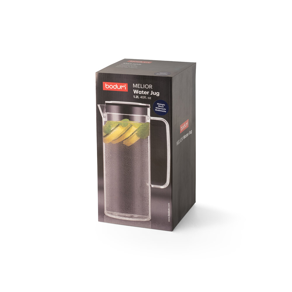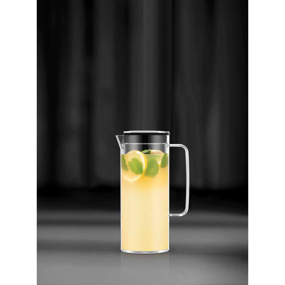 Large capacity, transparent cylindrical pitcher with protective lid. The expertly designed jug spout and convenient handle make serving drinks easy, while the lid protects against splashes and spills. Ideal for serving refreshing drinks but can also be used for serving hot drinks. Very versatile and with a considerable size, the Melior is the perfect pitcher for social events. It has a capacity of up to 1'2 L. Supplied in gift box. 100 x 237 x 147 mm