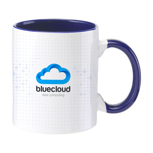 High-quality ceramic mug with coloured interior. The colour of the large handle matches the inside colour, resulting in a playful appearance. The perfect mug for all full colour prints, including photos. Dishwasher-safe. Capacity 350 ml.