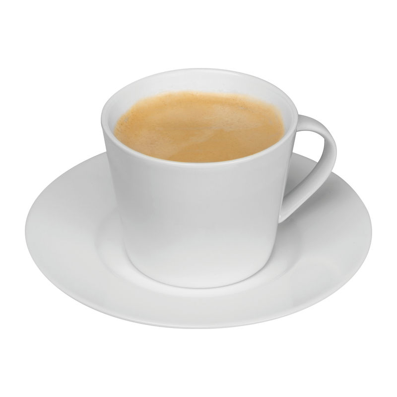 Cup made of porcelain with a filling capacity of 175 ml and saucer. Your logo will be applied by ceramic transfer printing.