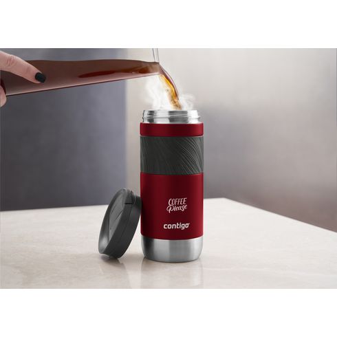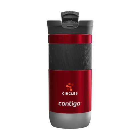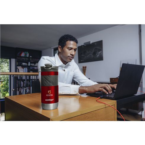 Double-walled stainless steel Contigo® thermos cup: vacuum isolated, equipped with a large, non-slip rubber grip and spout with SNAPSEAL™ technology which makes it easy to drink. Click the button up with one hand to drink and down to close the cup. 100% spill and leak-free. THERMALOCK™ technology keeps drinks cold up to 18 hours or hot up to 7 hours. Top-rack dishwasher-safe lid, handwash body. Capacity 470 ml. STOCK AVAILABILITY: Up to 1000 pcs accessible within 10 working days plus standard lead-time. Subject to availability. Contigo: The best in quality, design and technology. Immediately recognisable by its sleek and stylish design, strong and solid. The innovative Contigo water bottles and thermo cups are odourless, tasteless and BPA-free. The drinking bottles are operated one-handed and guaranteed to be 100% leak-free, so can be used anywhere, anytime, also on the go. Comes with a 2-year manufacturer's warranty.
