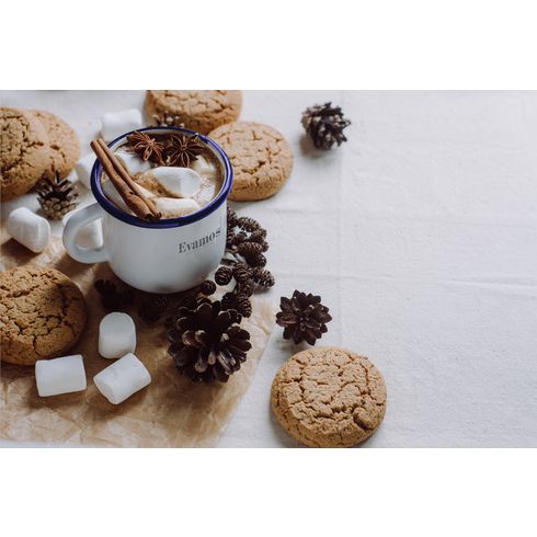 Enamelled mug. A popular retro-style design. To accentuate the retro look, the mug has imperfections. Capacity 350 ml. Packed individually.