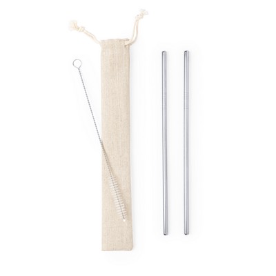 Drinking straw set 2 pcs, with cleaning brush and cotton pouch, reusable