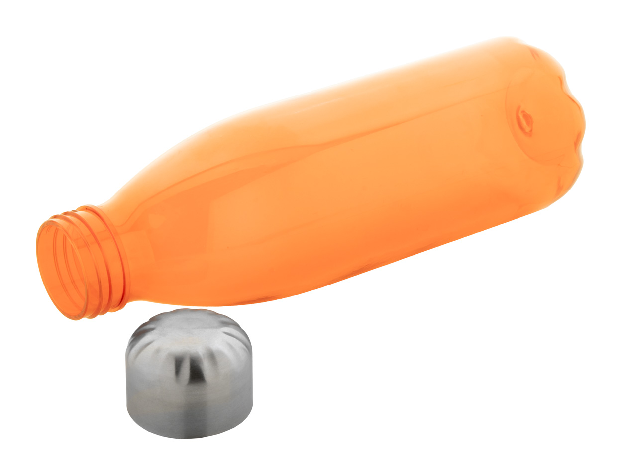 RPET bottle with stainless steel cap, 600 ml. BPA-free. Not suitable for carbonated drinks.