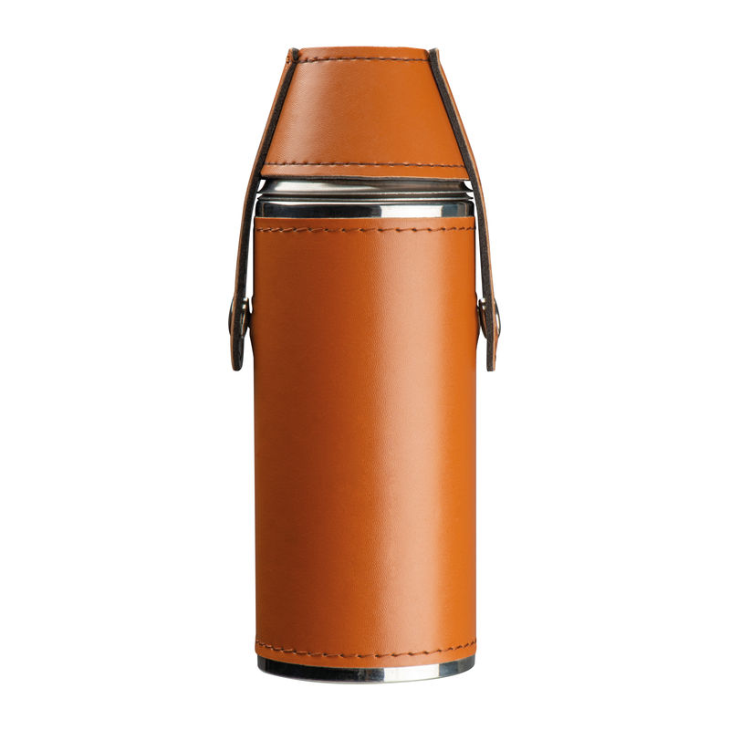 Stainless steel hip flask (filling capacity 230 ml) in PU cover with 2 pins. Your logo will be placed on the cover.