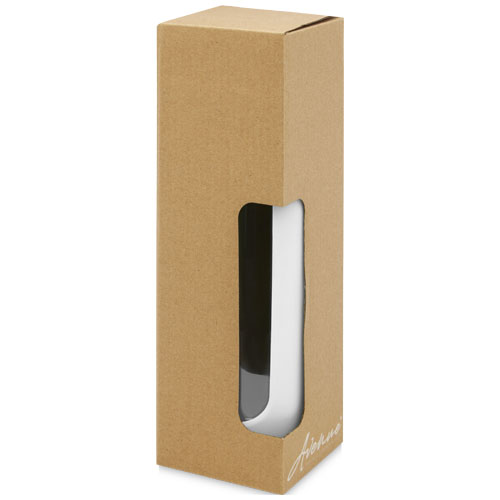 Eco friendly reusable water bottle that provides a pure water drinking experience. The bottle is made from durable borosilicate glass which conserves the pure real fresh taste of water, and it does not any contain harmful chemicals. Features a silicone grip with a leakproof lid made of organic bamboo. Tested and approved under German Food Safe Legislation (LFGB), and tested for phthalates content according to REACH regulations. Volume capacity is 600 ml. By removing the grip and lid the bottle is dishwasher safe. Presented in a recycled cardboard gift box.