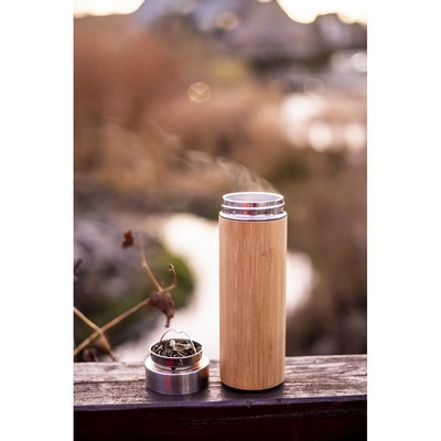 Bamboo vacuum flask 350 ml with sieve stopping dregs | Christian