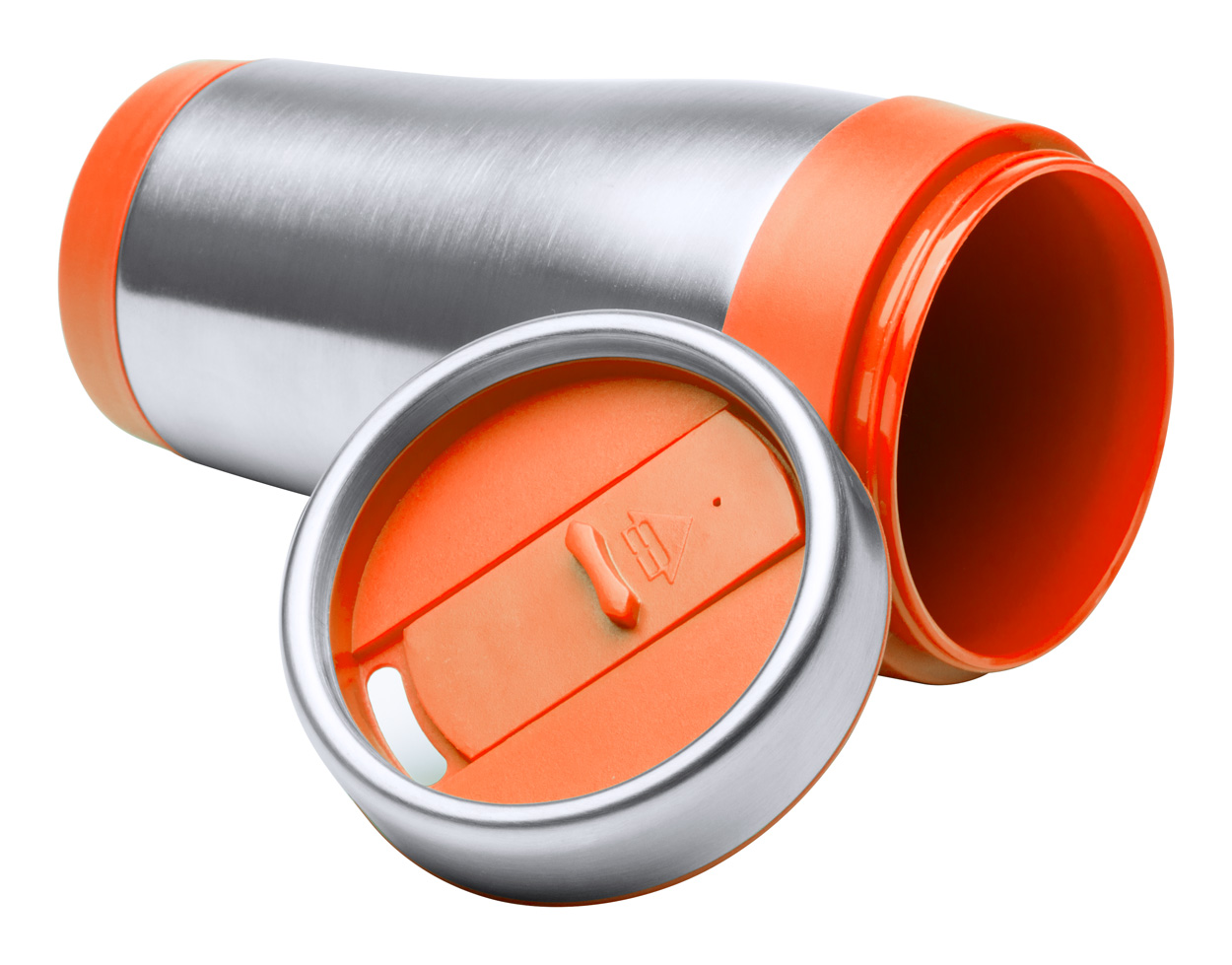 Stainless steel, double-wall thermo cup with coloured plastic parts, in gift box. 450 ml.