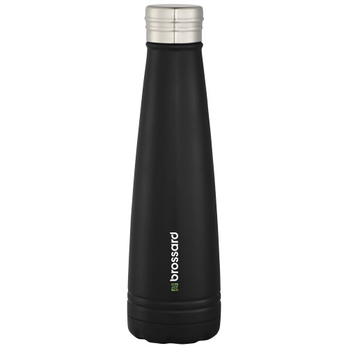 The Duke Bottle is double wall 18/8 grade stainless steel with vacuum insulation. The inner wall is plated with copper for ultimate conductivity to keep drinks hot for 12 hours and cold for 48 hours. Volume capacity is 500 ml. Presented in an Avenue gift box.