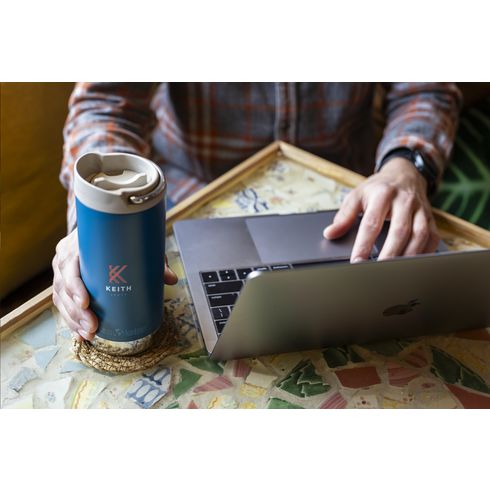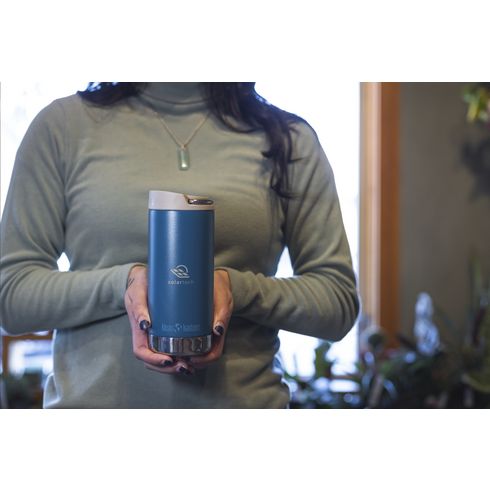 Double-walled thermos cup from the Klean Kanteen brand. Equipped with Climate Lock™ vacuum insulation. This high-quality drinking cup is made from certified 90% post-consumer recycled 18/8 stainless steel, has a solid bottom and is finished with an impact-resistant Klean Coat® powder coating. Keeps drinks warm for a long time: up to 11 hours hot and 38 hours cold. Not suitable for carbonated drinks. The leak proof screw cap with TK Closure™ has a Café Cap, a rotating disc to open and close the drink opening and to prevent spills. Equipped with a handy stainless steel carrying ring. This slim bottle fits in the bottle holder of almost any car and is ideal for a coffee-to-go. The generous opening makes this cup easy to fill and clean. Dishwasher-safe. Washing by hand is recommended to preserve the imprint. Taste and odour neutral. The ideal thermos for on the road or at work. Capacity 355 ml. Klean Kanteen is Climate Neutral certified and a member of 1% For the Planet and thus supports environmental organisations.