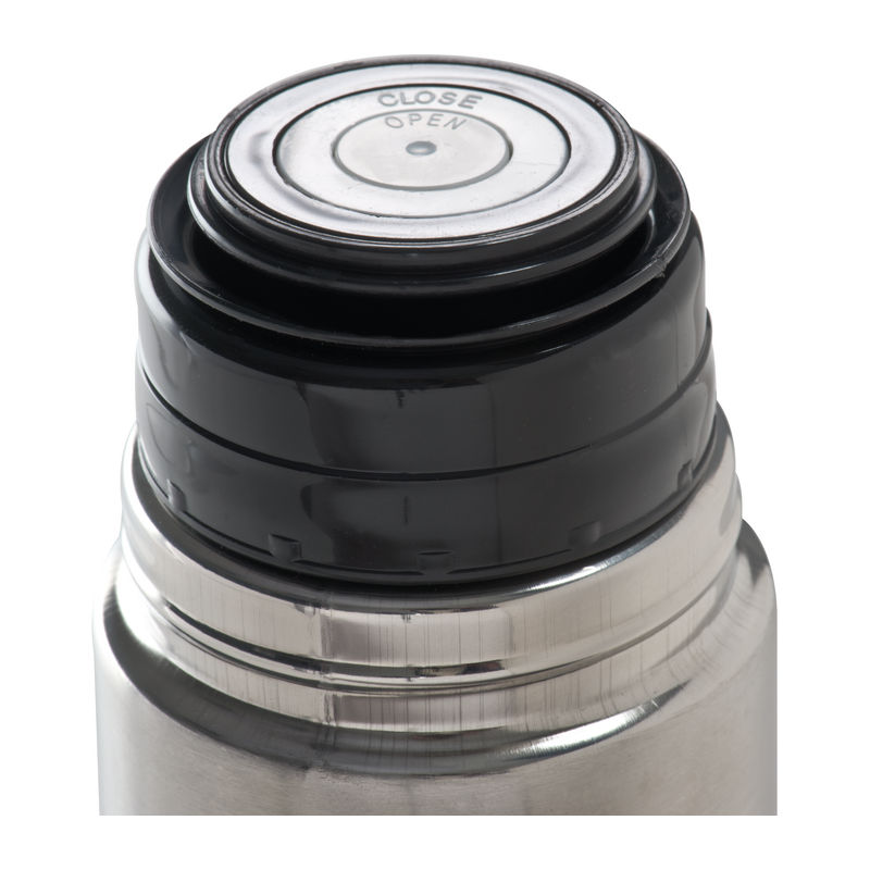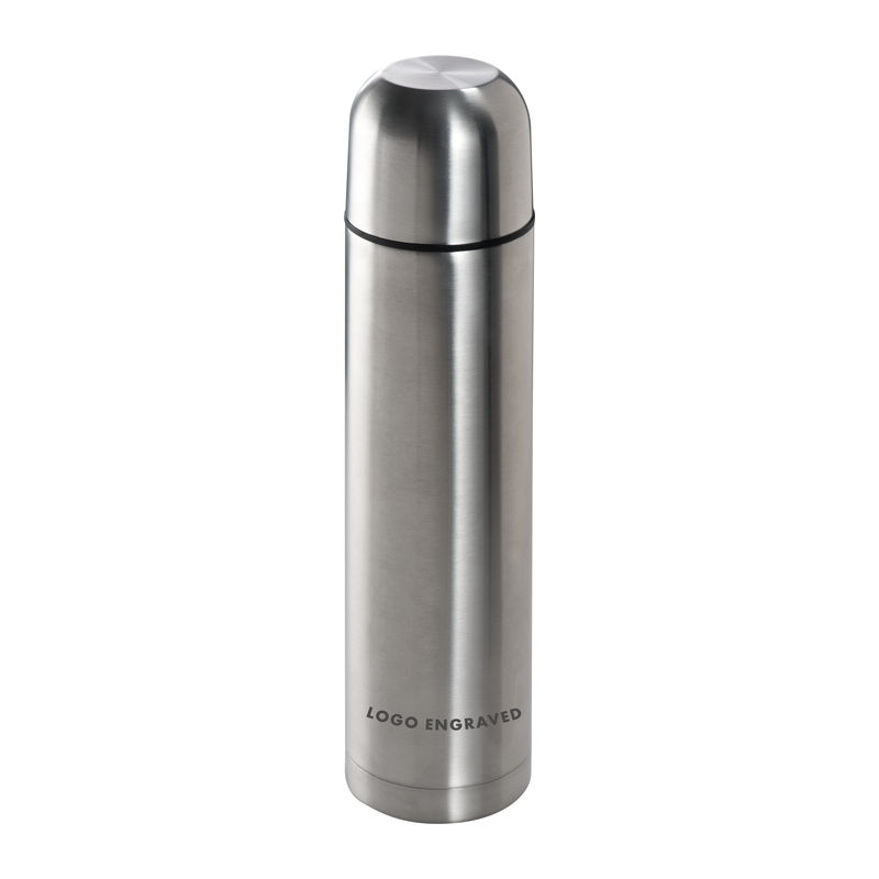 Double-walled stainless steel thermal flask with 1L capacity, fast closure, and metal cup. Your logo will be engraved.