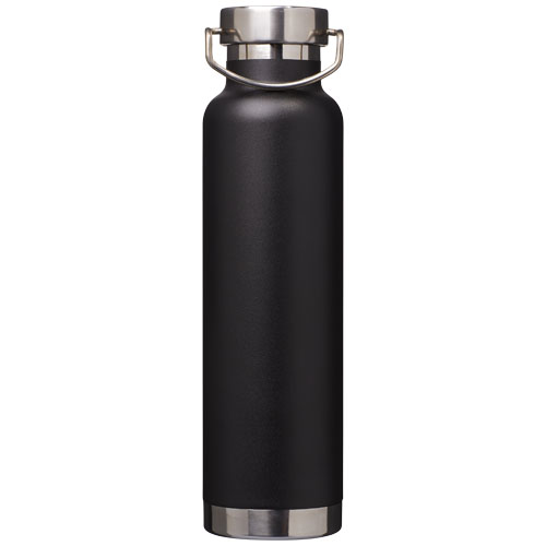 Durable, double wall stainless steel vacuum construction with copper insulation, which allows your beverage to stay cold for 48 hours and at least 12 hours for hot beverages. The construction also prevents condensation on the outside of the bottle. On-trend, durable powder coating. Stainless steel screw-on spill resistant lid with durable stainless steel hand loop. Wide opening for comfortable filling and pouring. Perfect for ice cubes. Volume capacity is 650ml. Presented in an Avenue gift box.