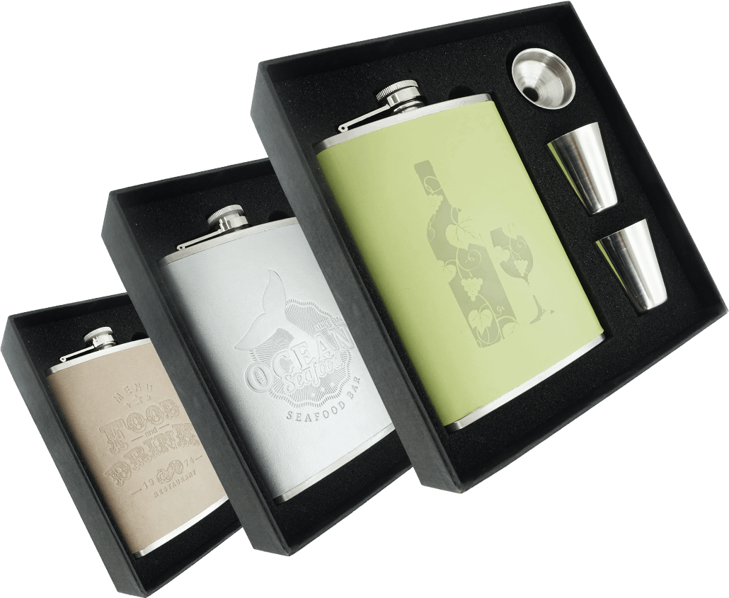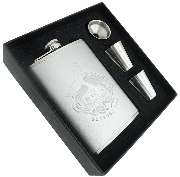 Contains hip flask 240 ml