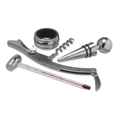 Wine set 4 pcs in box, wine accessories: waiter's knife, ring, wine stopper, thermometer