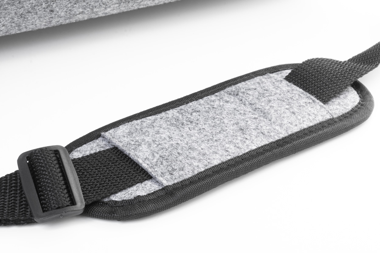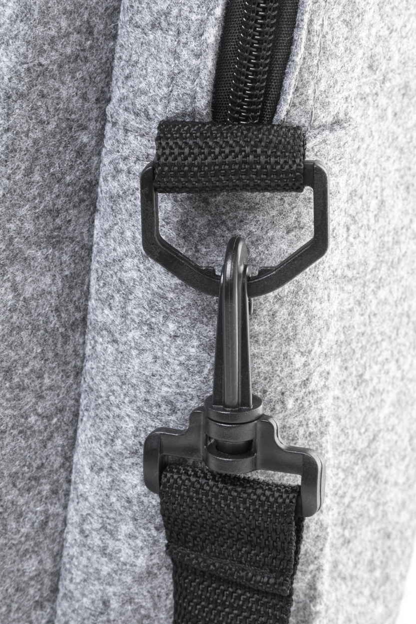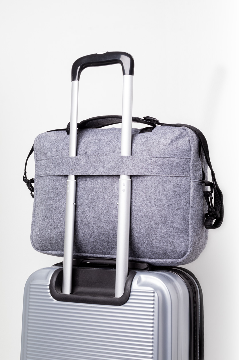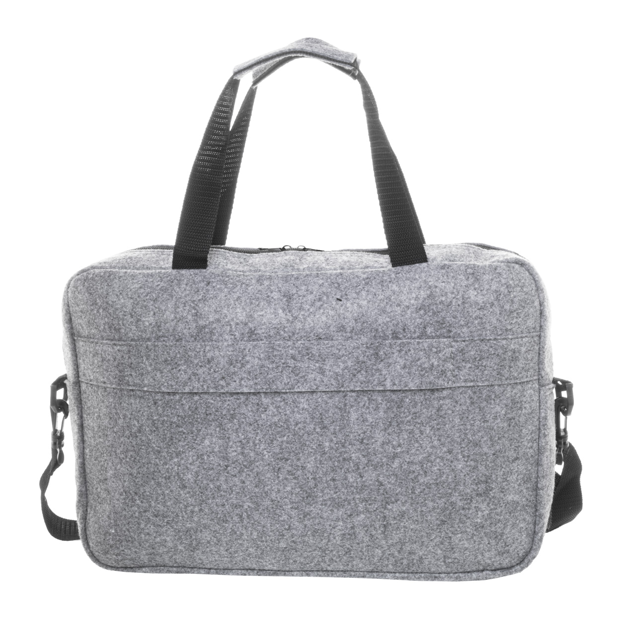 RPET felt document bag with zipped main compartment and front pocket. With laptop (15") compartment, trolley strap and adjustable shoulder strap. With distinctive RPET label.