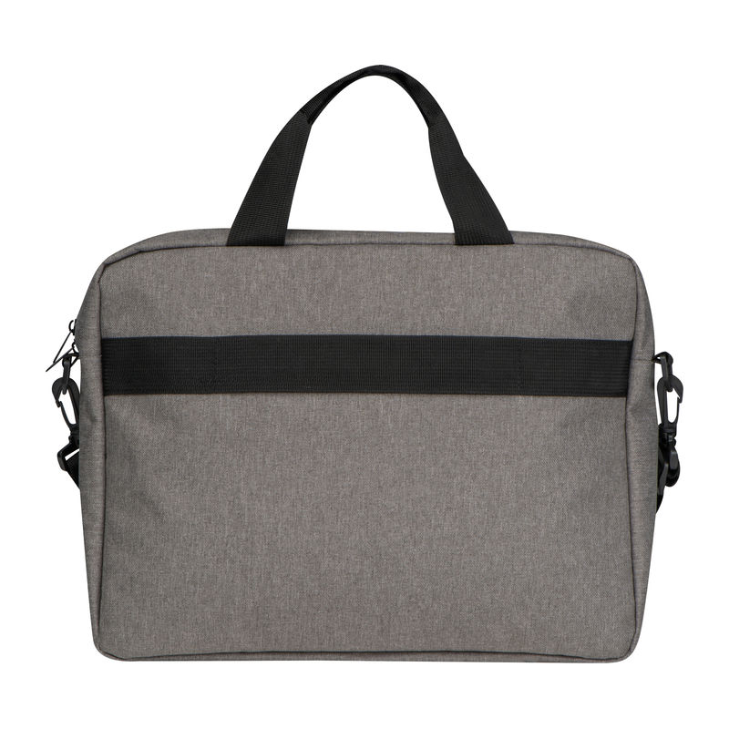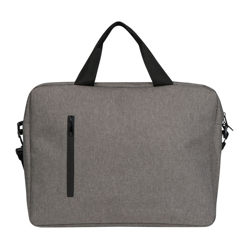 Laptop bag crafted from 600D RPET fabric, featuring sturdy handles, a closable front compartment, and a padded, adjustable shoulder strap for comfortable carrying.