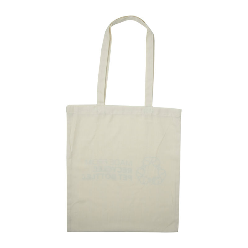 This shopping bag (140 g/m²) with long handles is made from recycled plastic. The logo is printed on one side.
