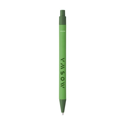 Bblue ink ballpoint pen with a barrel made from recycled paper. The clip, push button and point are made from biodegradable PLA.