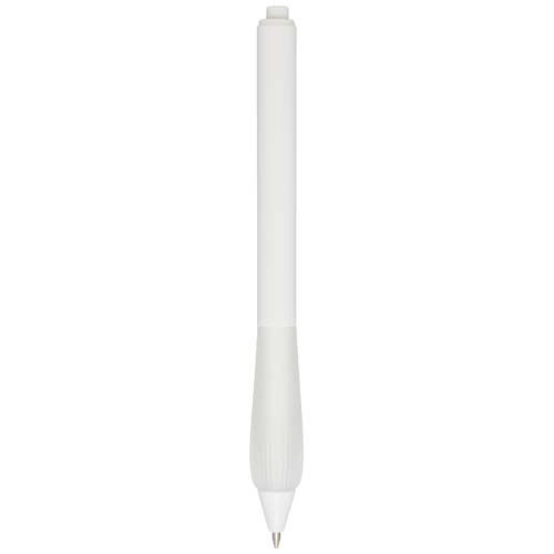Recycled plastic ballpoint pen with a rubberized barrel, and grip made of TPR. Ink colour: Black. Writing length: 1000 metres. Nib size: 1.0 mm.