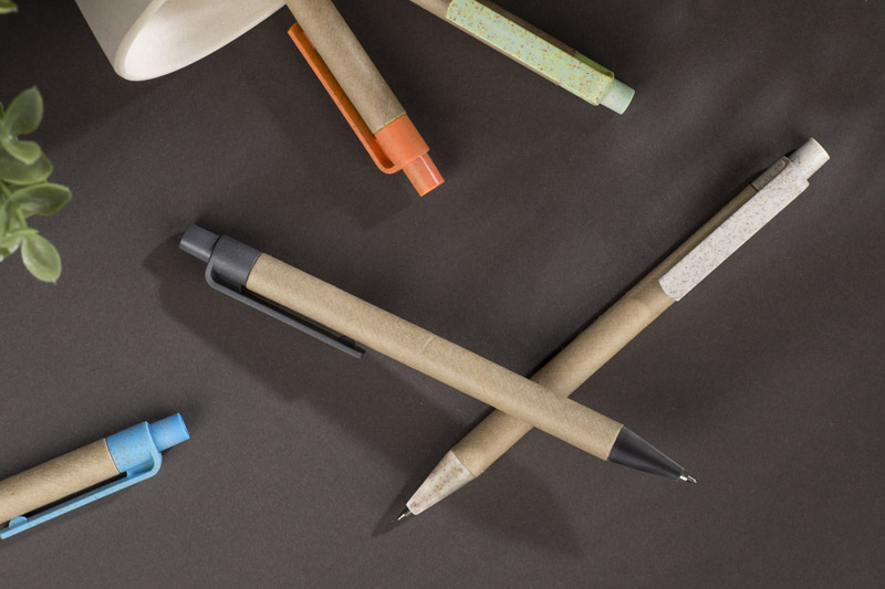 The TIKO ballpen was made with anintention to reuse raw materials. Its body is made of recycled paper, and the tips are made of plastic with an admixture of natural straw, which limits the amount of plastic needed for production. A simple, timeless pattern. Ballpoint pen. Type X20 refill in blue.