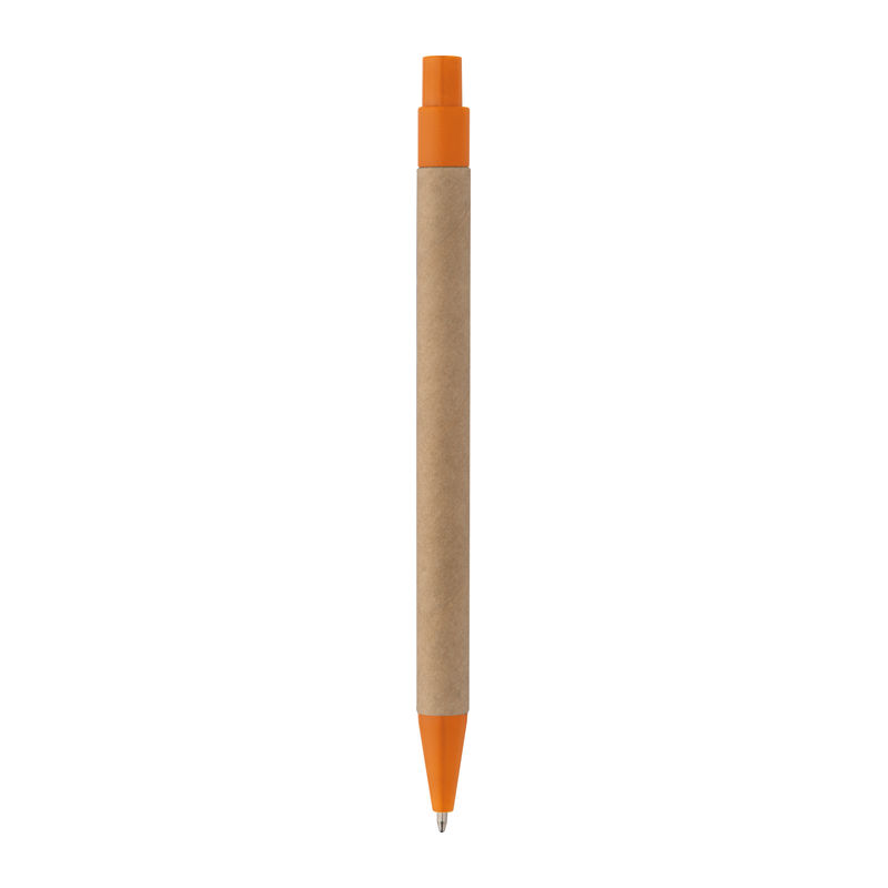 Paper pen made from recycled paper with blue-writing refill. Your logo will be printed below the clip.