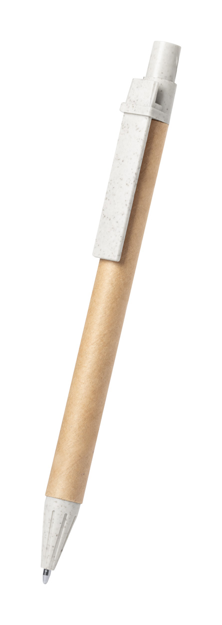 Recycled paper ballpoint pen with ecological wheat straw plastic parts. With blue refill.