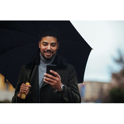 B'RIGHT automatic umbrella, made from RPET, bamboo handle, 8 panels, RPET pongee material with GRS (Global RecycIed Standard) certificate