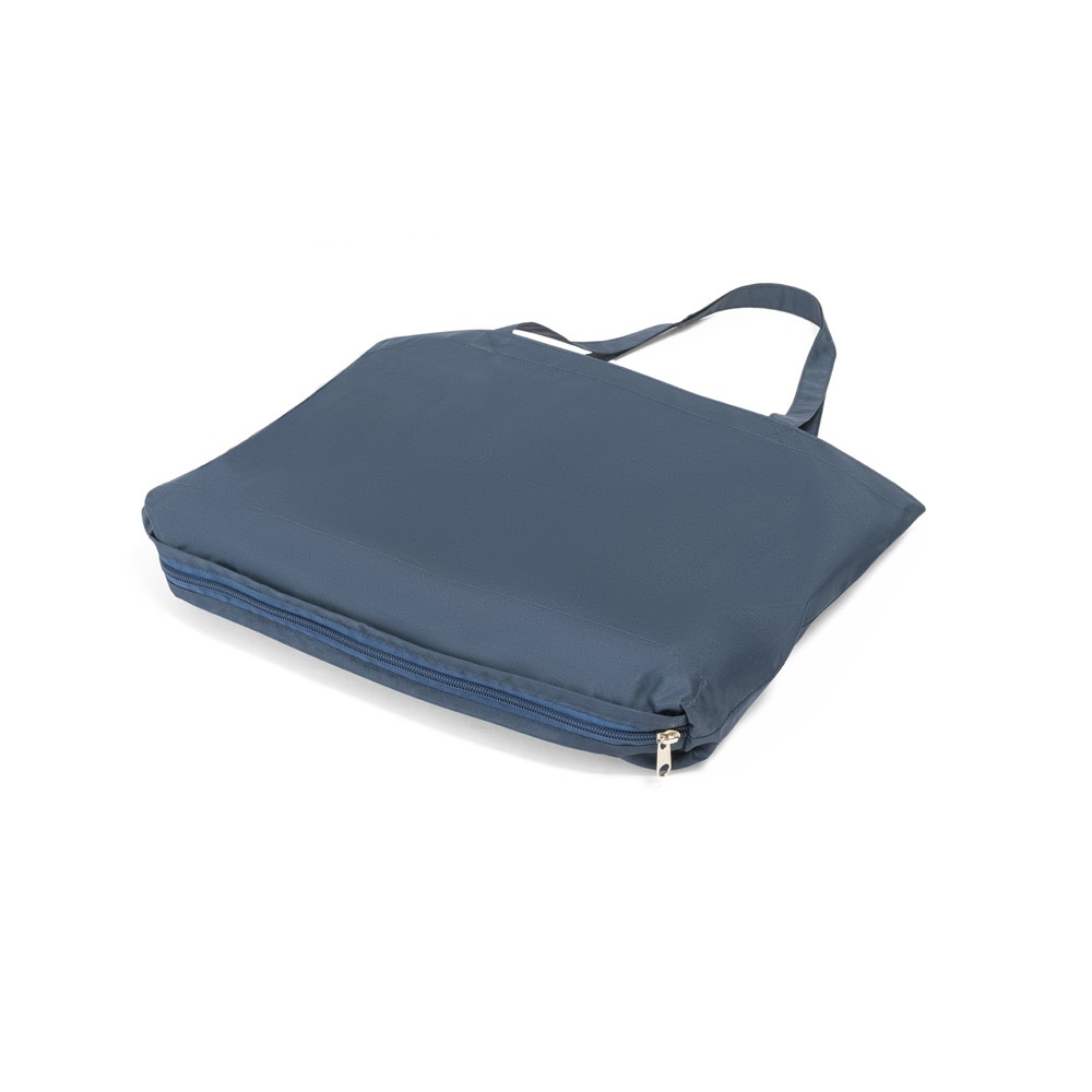 2-in-1 umbrella with recycled polyester shopping bag included. The 21'' folding umbrella in recycled polyester (100% rPET) pongee 190T, fibreglass rods, metal pole and handle in recycled ABS (35% recycled). Folding umbrella in 3 sections, with automatic opening and windproof. Shopping bag in recycled polyester, which can be stored for transport or used separately. Ø 970 x 290 mm |Bag: 420 x 390 mm