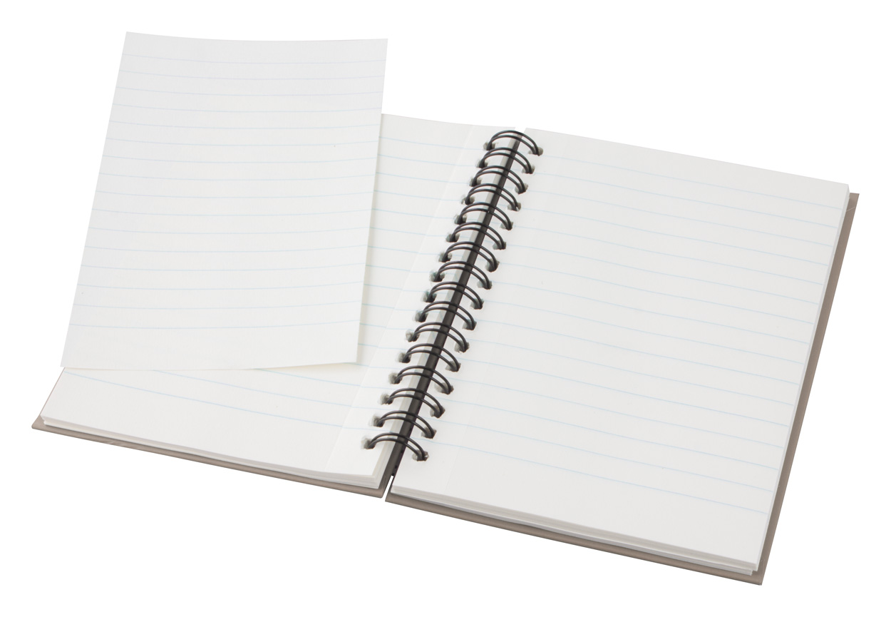 Recycled paper spiral notebook with 80 lined sheets, A6.