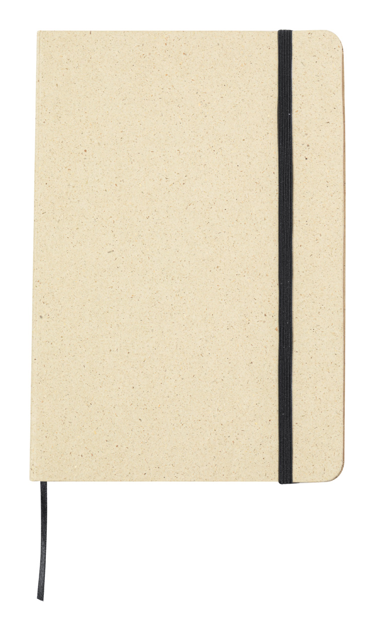Grass paper notebook with 80 lined sheets. With bookmark and rubber band. A5 size.