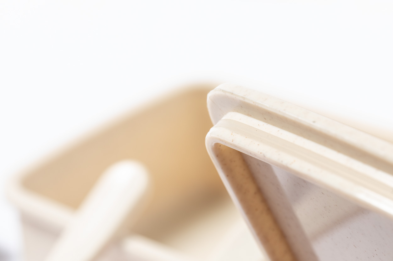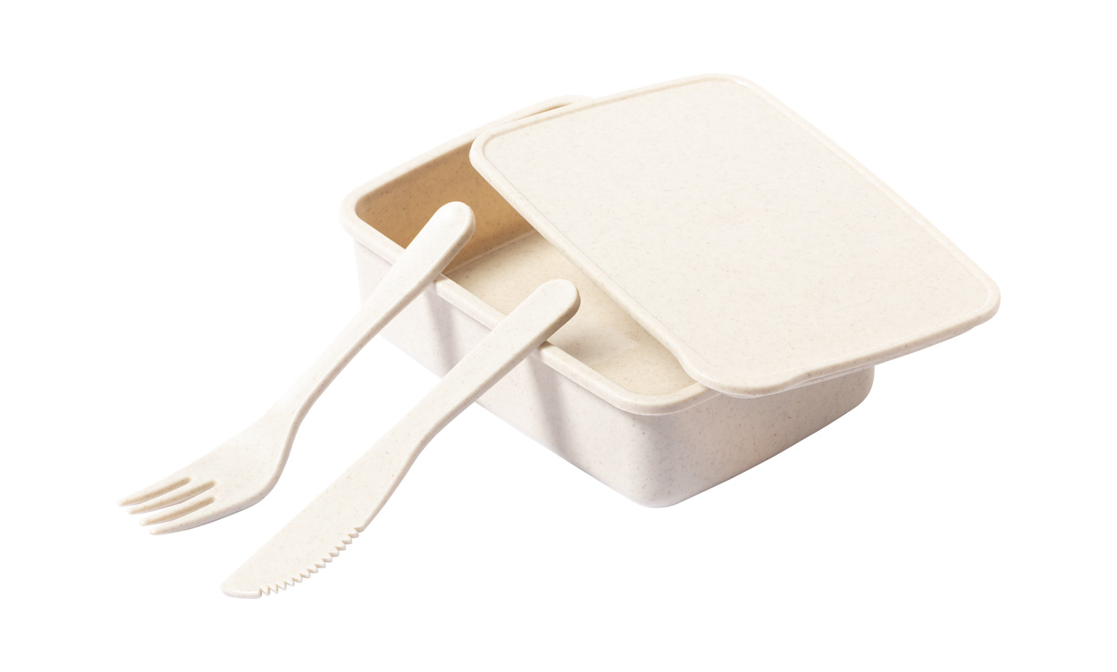 Lunch box in PP plastic with cutlery set (knife and fork) and elastic strap. 700 ml.