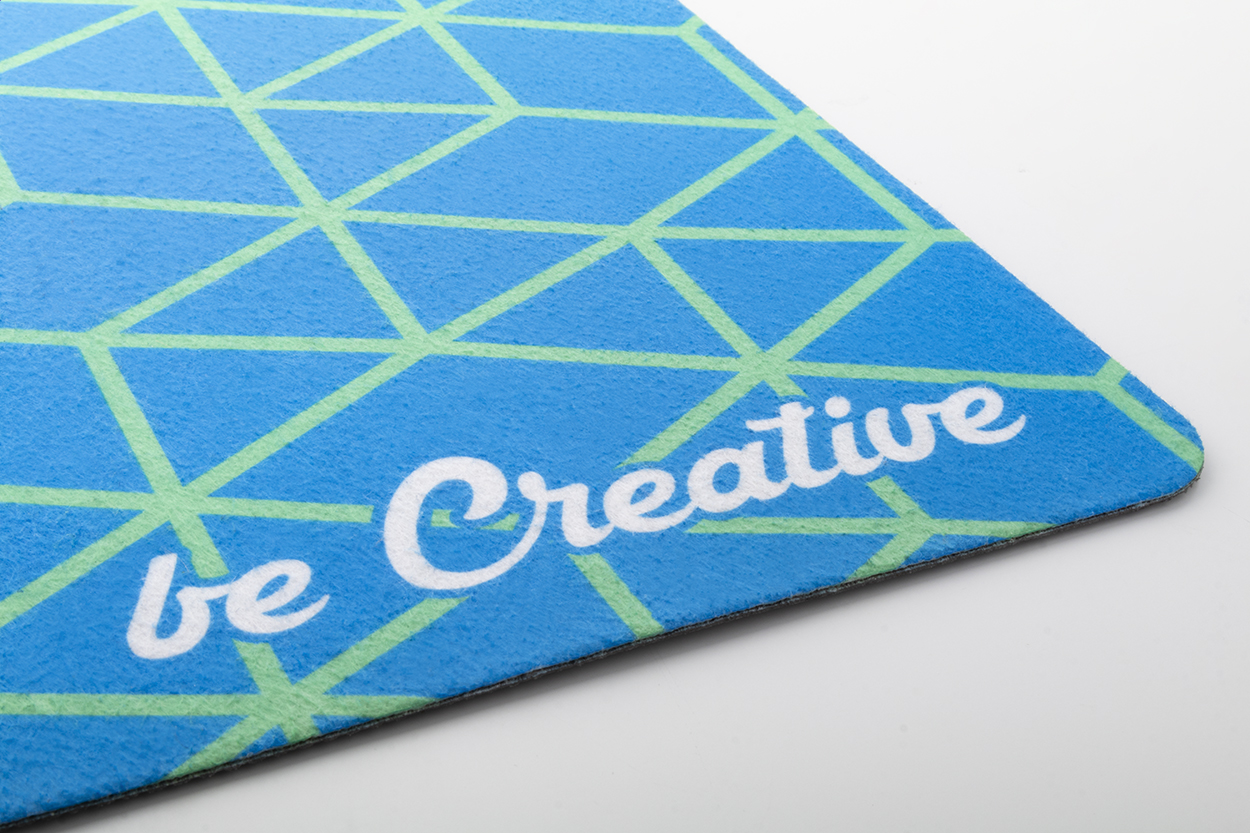 Custom made, RPET felt desk mat mouse pad with rubber anti-slip base. Price includes sublimation printing. MOQ: 50 pcs.