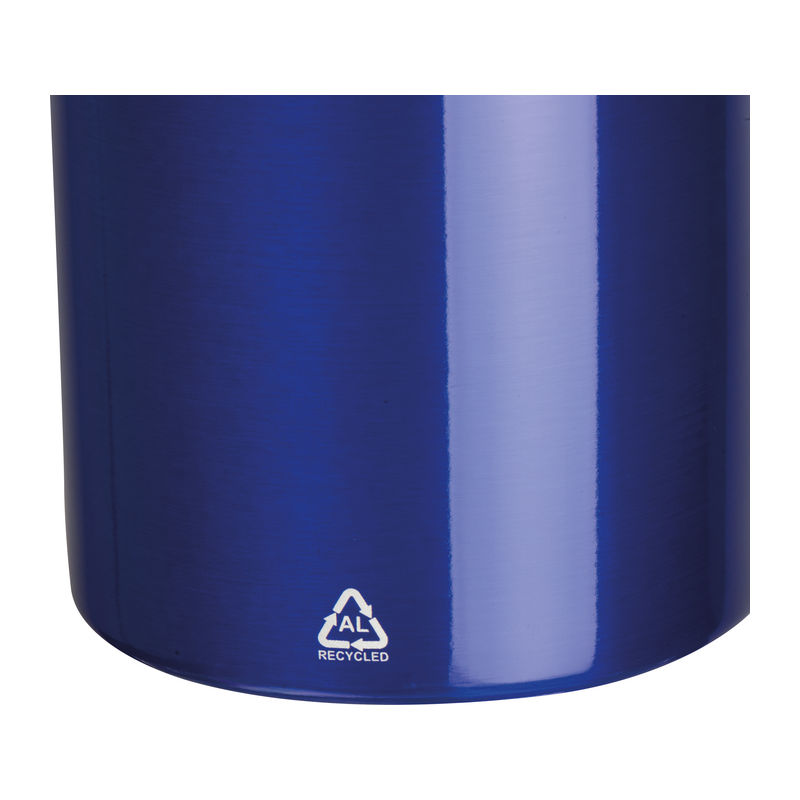 Drinking bottle with 750ml capacity made of recycled aluminium and practical silicone loop. We will engrave your logo on the bottle.