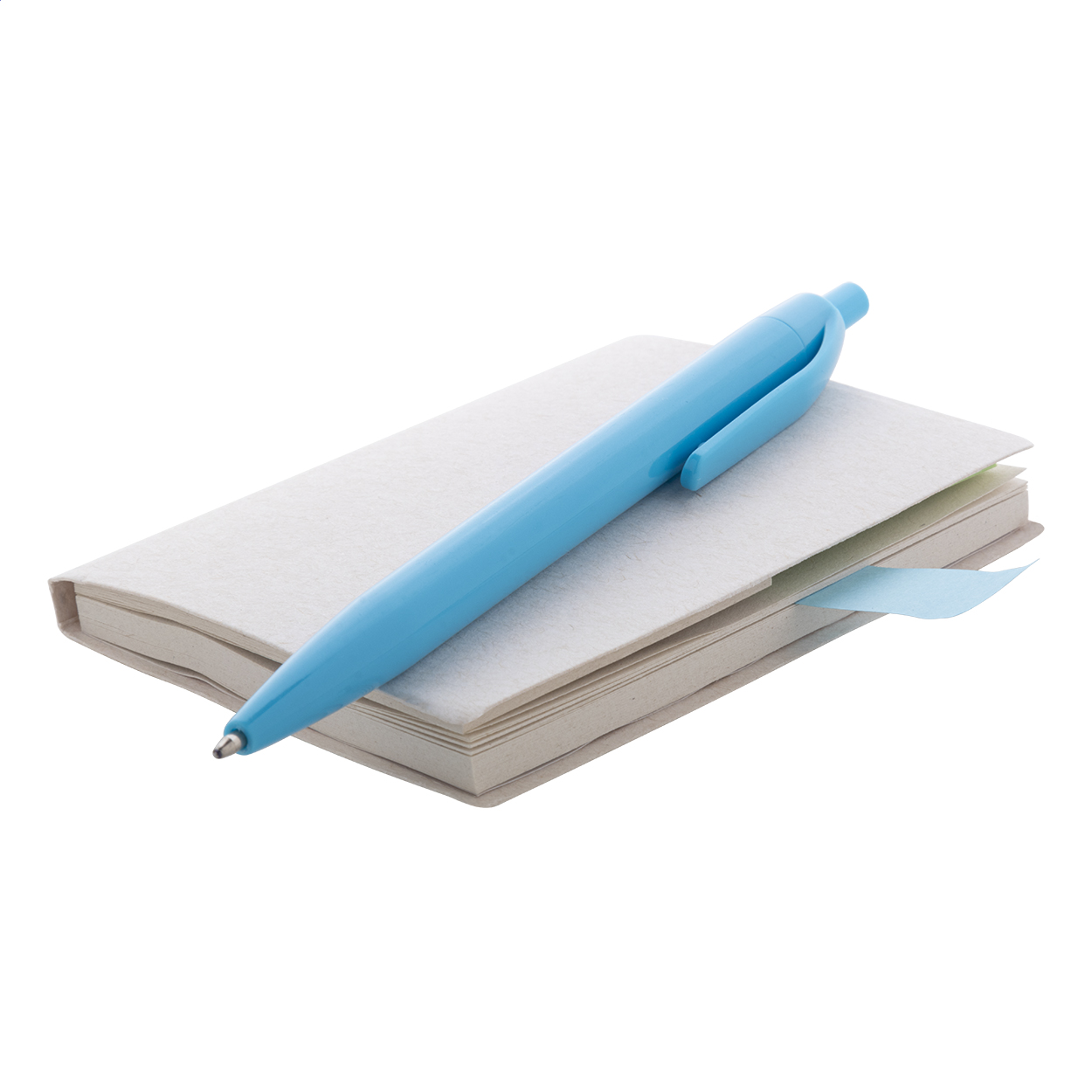 Recycled milk carton paper sticky notepad with 50 large and 25 medium notes and 100 page markers (in 4 different colours)