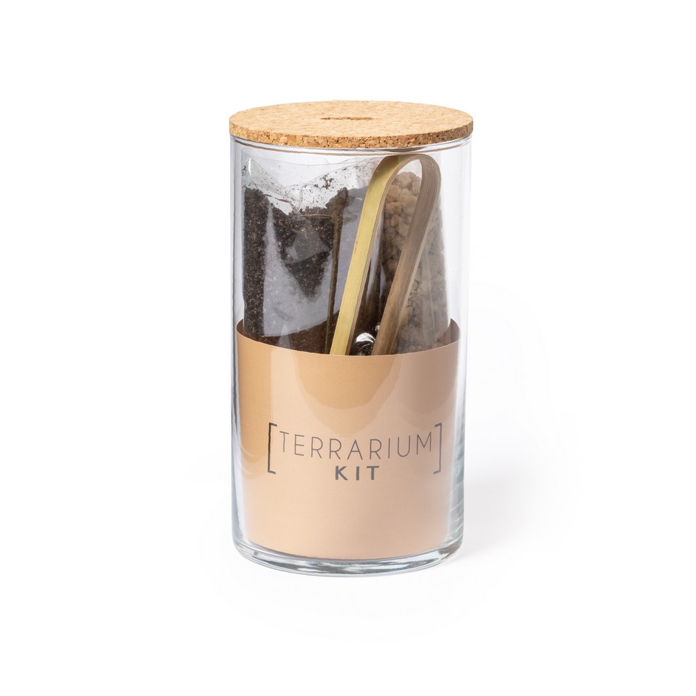 Glass terrarium, includes: cactus seeds, substratum and bamboo tweezers, natural cork lid (made in Europe)