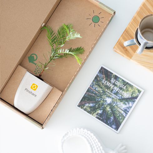 Mailbox tree from the Treemore brand: Giant Sequoia (Sequoiadendron Giganteum). A product in which the tree takes centre stage, where everyone can take care of their own tree at home, watching it grow. The trees are sourced from an Dutch nurseries and are delivered in a flower pot and packaging that has been specially developed to fit through a letterbox. The tree is supplied in the soil and in a bio-based flower pot made from elephant grass fibres. The packaging and the supplied information booklet are FSCĀ® certified and 100% recyclable. An original way to surprise someone whilst also making the world a little greener.