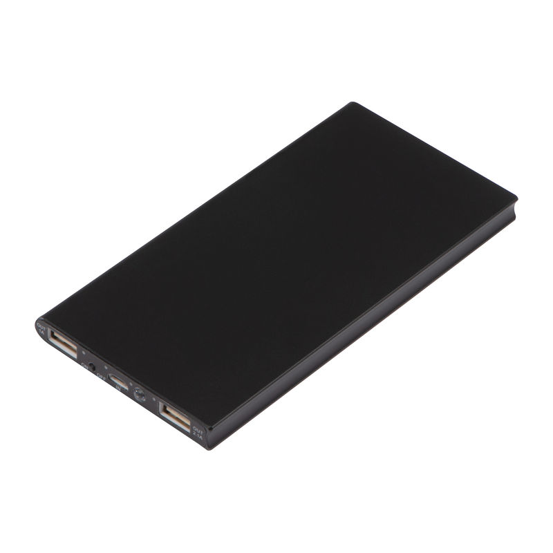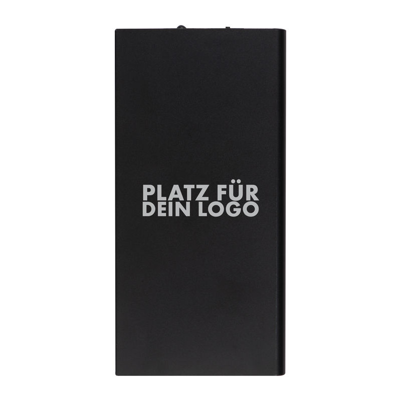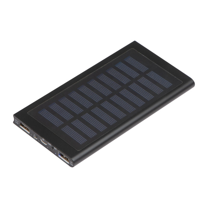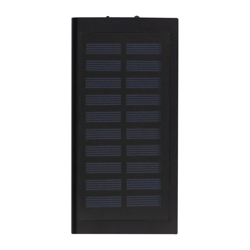 Solar powerbank made of metal, with 8,000 mAh capacity and USB charging cable. It allows you to charge your smartphone or tablet several times. We will engrave your logo on the back.