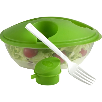 Lunch box, frosted salad bowl 1000 ml with lid, fork and small salad dressing container (approx. 50 ml)
