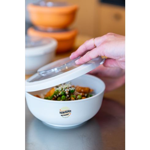 Reusable PP plastic bowl from the Amuse brand. Use for poke bowls, salads, and other cold meals. Stackable so space-saving. With transparent Tritan lid so you can see what's in the bowl. Straight from the fridge onto the table. Convenient for at home or on the go. Suitable for microwave (without lid), freezer and dishwasher up to 65°C. Hand washing is recommended to preserve the imprint. Capacity 1,000 ml. Made in Belgium.