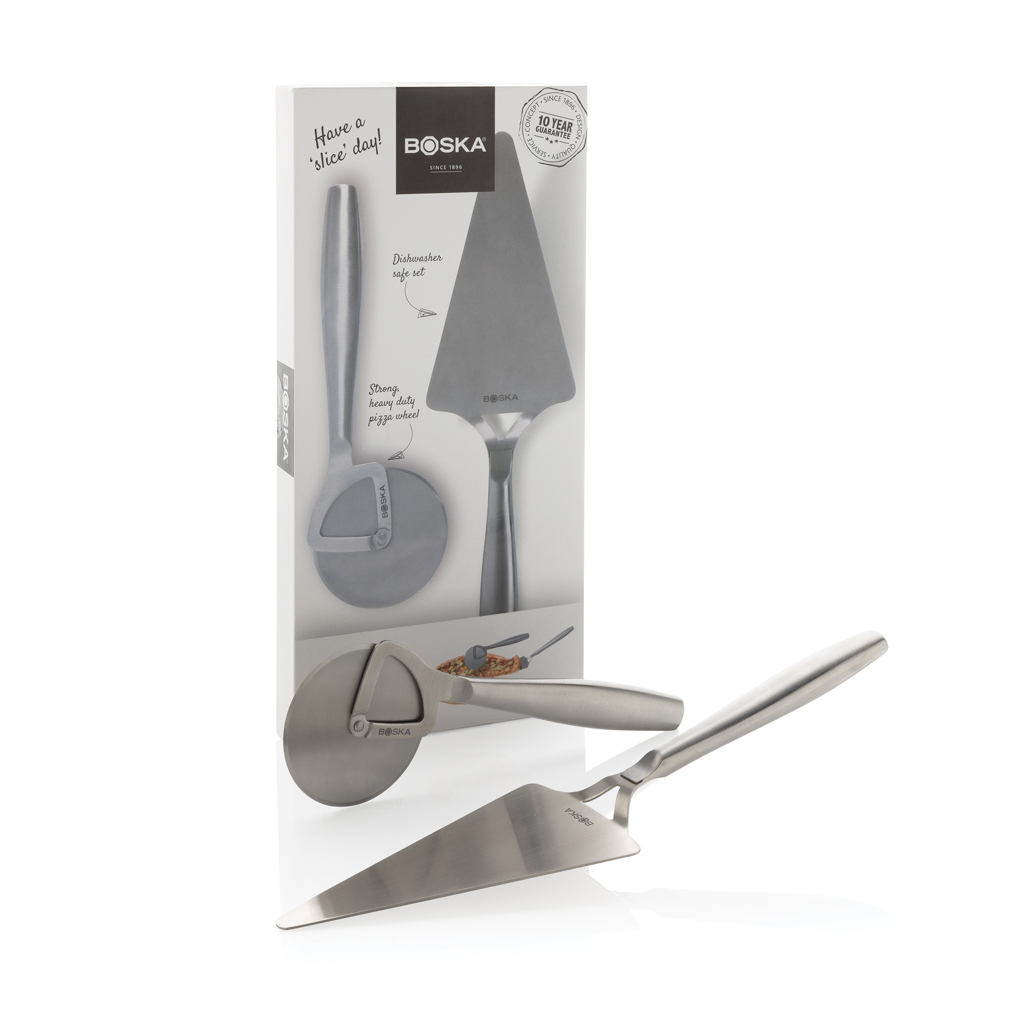 Slice and serve your favorite pizza in style with the Pizza Set Copenhagen, from the brand BOSKA – a B Corporation certified company. This dishwasher- and refrigerator-safe set includes a lightweight pizza wheel and server, both made of high-quality stainless steel. Perfect not only for pizza but also for other culinary delights like flammkuchen and cake. Moreover, it comes with a lifetime guarantee.