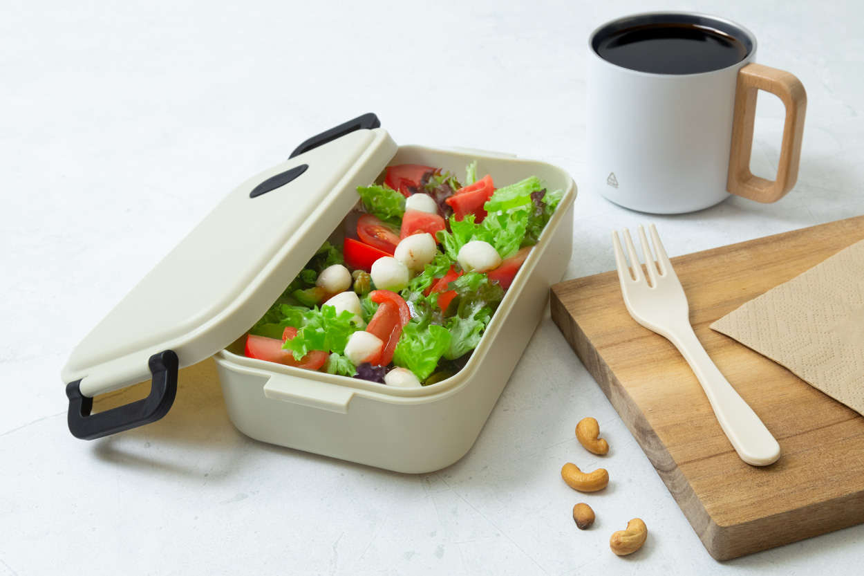 Lunch box in PP plastic with airtight lid, silicone valve and buckle closure, 1000 ml.