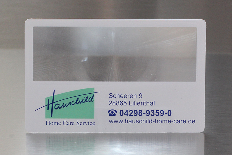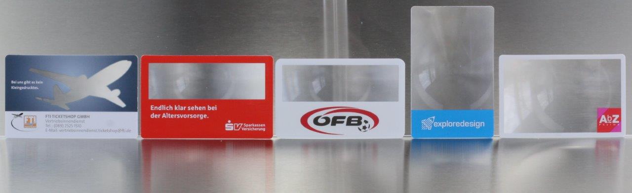 The lupcard, an advertising magnifier in business card format, is super thin and extremely flexible.