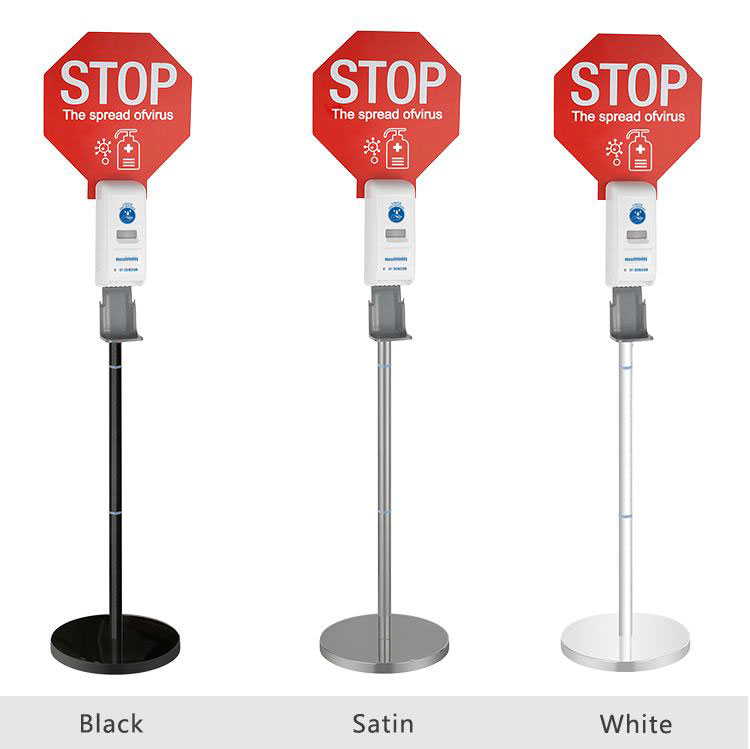 The dispenser on stands can have also billboards with messages ( Stop spread of germs, etc).