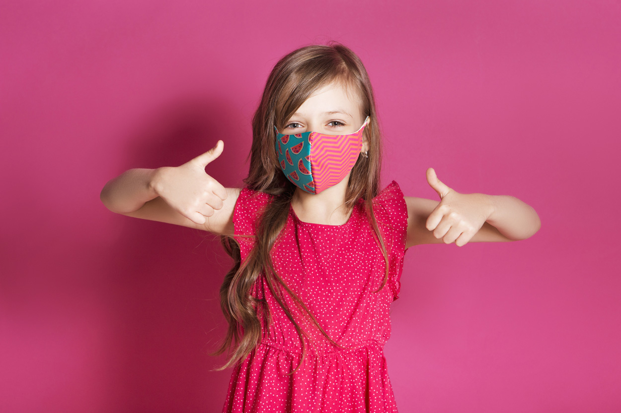 Custom made, washable and reusable two-layer face mask with rubber earloops and sublimation printed graphics. In kids size for ages 4-12. Made of 100% polyester (140gr/m2) and 100% cotton (140 gr/m2) OEKO-TEX fabrics. Price includes sublimation printing. MOQ: 100 pcs.This mask is not personal protective equipment it does not have virus filtering properties, however, covering your face may help to reduce virus transmission to others.