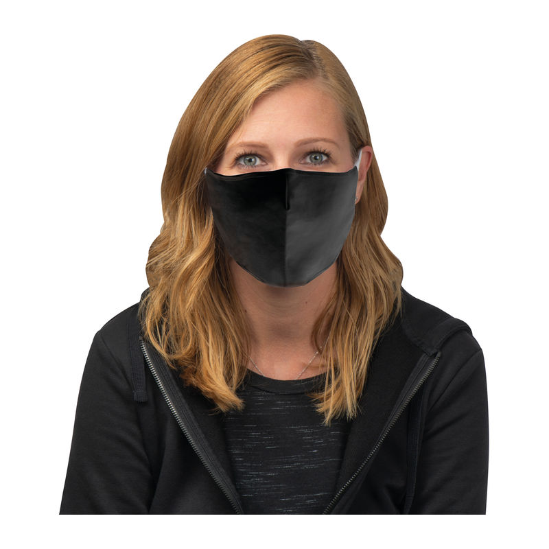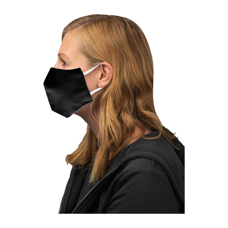 Oeko-Tex® STANDARD 100 certified cotton face mask providing mouth and nose protection. Constructed with 2-ply fabric (outer layer 225 g/m², inner layer 145 g/m²) and equipped with an elastic strap for secure fit.